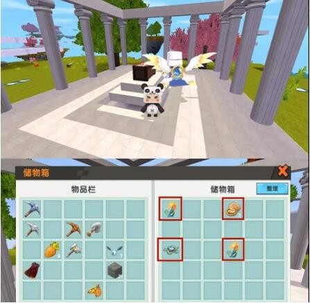 玩家在空岛一个NPC旁边会看见一个储物箱,打开这个箱子会看见其中有核桃、星站能源碎片、智能芯片等材料,同时与这个npc进行对话,还能在其商店中看见星站能源碎片以及智能芯片材料。