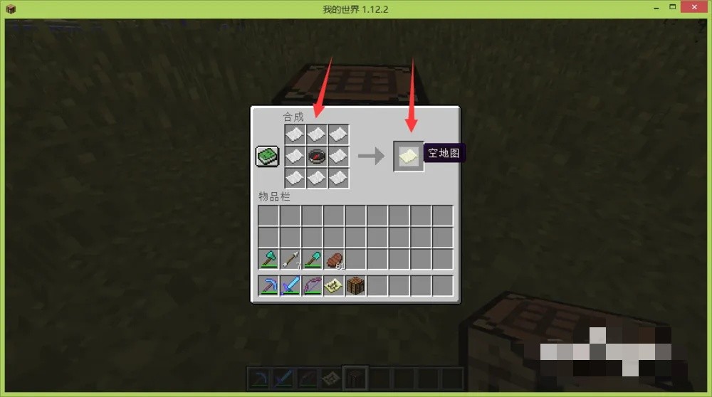 制作一张地图需要8张纸加1个指南针,在工作台最中间格放指南针,边缘放纸张。合成的是一张空地图,要将空地图拿在手上右键使用,才能显示出周围的地物地貌。