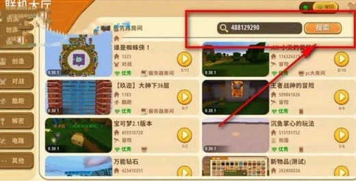 如果右侧玩家列表太多了的话,还可以搜索好友的迷你号来找到他,点击进入。
