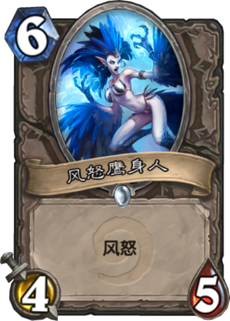 第5名也是偶数卡组的组件,风怒鹰身人在卡组中最大的作用就是给夺尸者加buff,毕竟偶数带风怒属性的太少,所以它也是成功上位了,另外由于它可以说只在偶数卡组中出现,所以出场率比指挥官低很多,但胜率反而高一些。