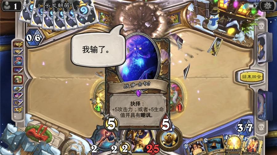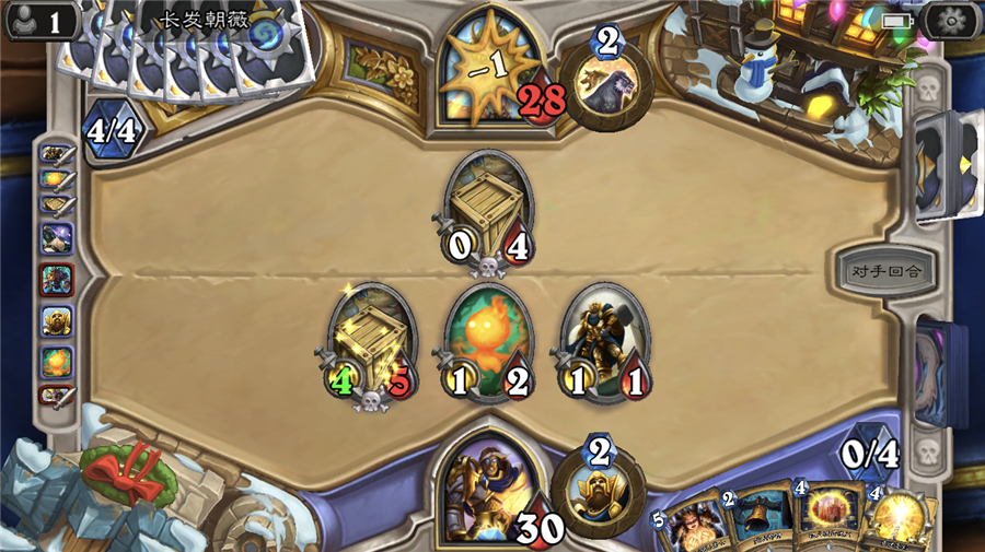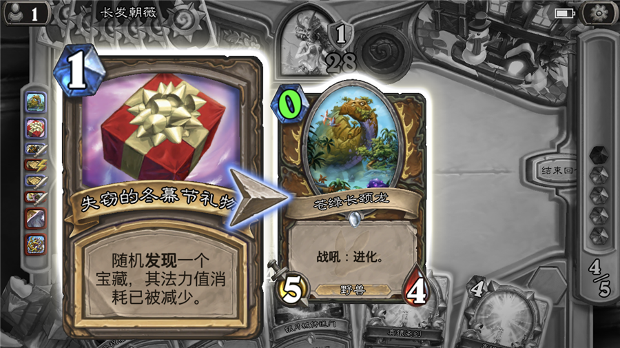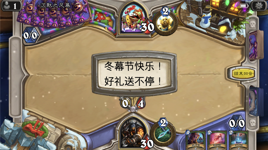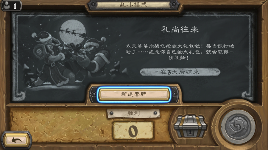 第一步还是挑选职业然后构筑自己的30张套牌(狂野模式),在开局之后双方的场上会各出现一个0/4的礼物盒,在自己的回合打破礼物盒将会获得一张1费的“冬幕节礼物”,需要注意的是只要是自己的回合不管打破对手的还是自己的礼物盒都能获得礼物。