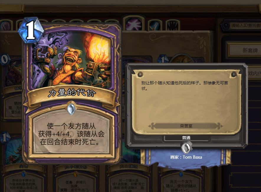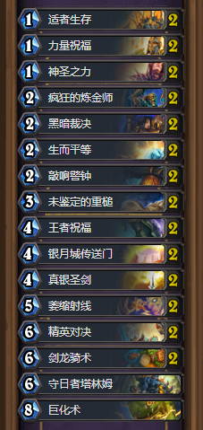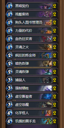 为了方便大家拿到卡包下面就把这两种套路的卡组贴出了供大家参考,这里提供的是一个思路,卡牌的搭配不唯一,大家可以根据自己的情况进行替换。这里更推荐术士的那套卡组,毕竟更加简单直接。
