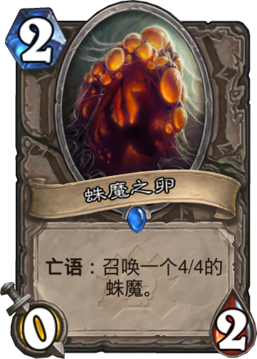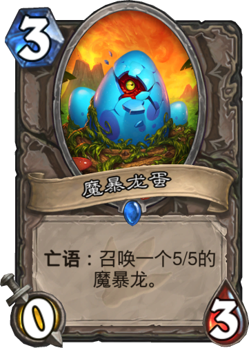 魔暴龙蛋,蛛魔之卵,机械蛋等蛋类随从都有一个通病,那就是只有零点攻击,无法依靠进攻触发亡语,但也正因为如此,亡语召唤出来的随从往往具有非常超模的身材,2费4-4,3费5-5,五费8-8可不是闹着玩的。还好,炉石传说中有着非常多的法术或随从配合这些蛋触发亡语,比如装死,恐鳞追猎者,还有带有磁力的机械随从与机械蛋合体等。