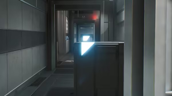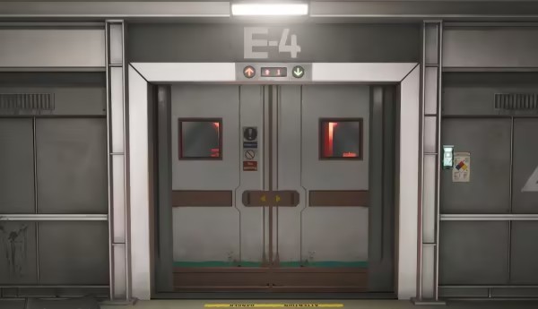 向后转,经过E-4房间,一直向前走,走到栏杆可见电梯井处的第2个密码。
