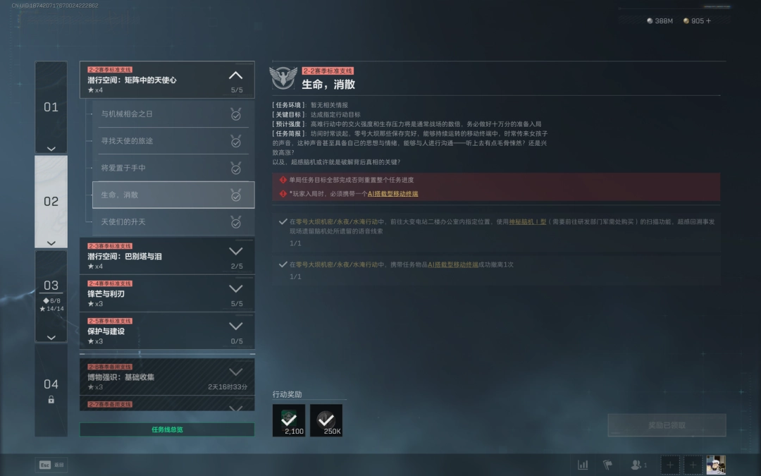 2、在零号大坝机密/永夜/水淹行动中,携带任务物品【AI搭载型移动终端】成功撤离1次