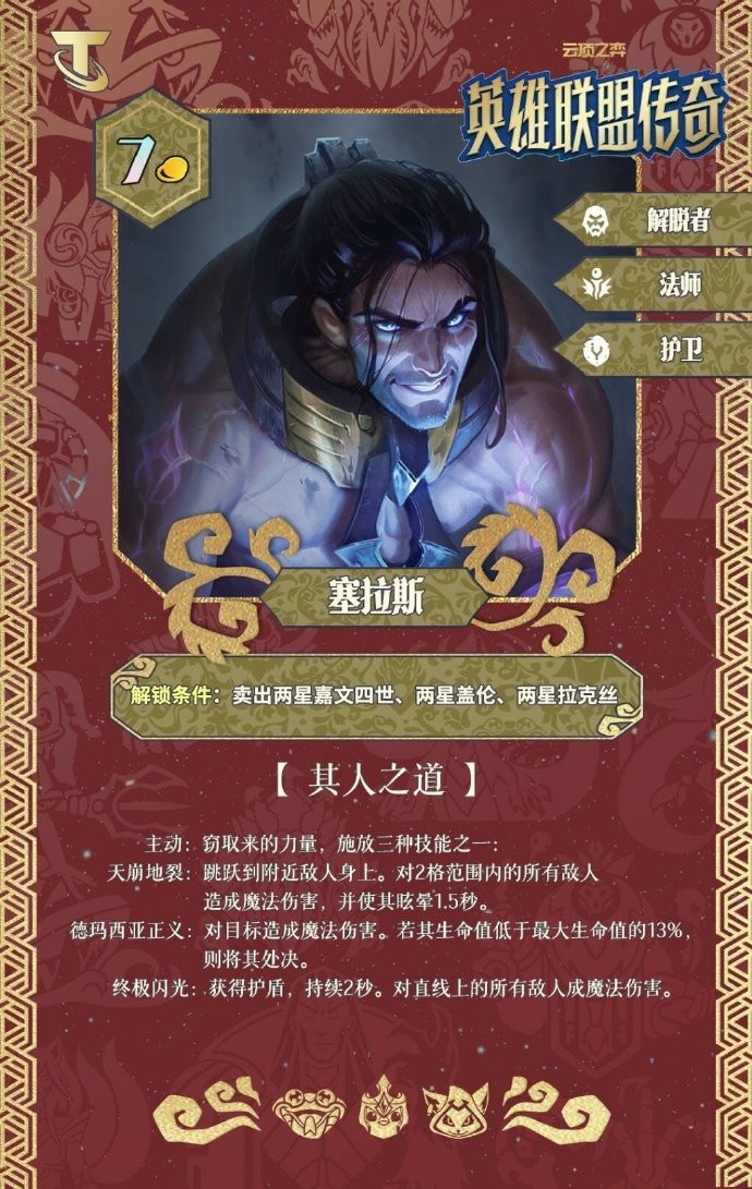 云顶之弈S16版本英雄联盟传奇主题PBE美测服更新了,在新赛季会增加很多新的羁绊和棋子,还有不少老羁绊,老英雄的回归,那么有不少小伙伴好奇各个英雄的技能是什么,下面就给大家带来s16塞拉斯羁绊效果一览。