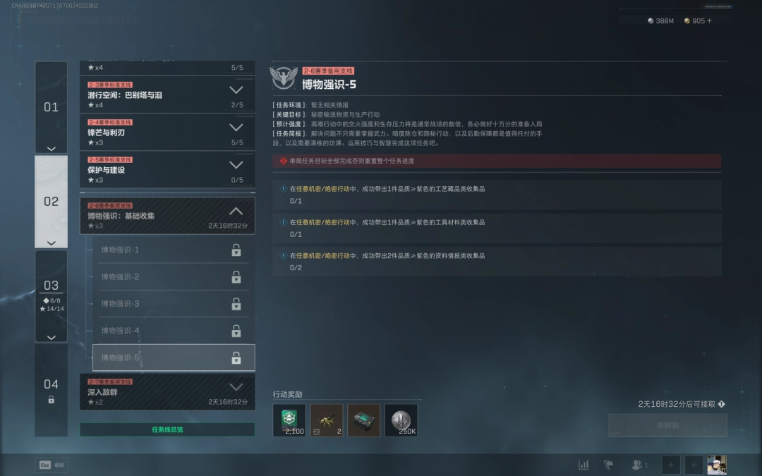3、在任意机密/绝密行动中,成功带出2件品质≥紫色的资料情报类收集品