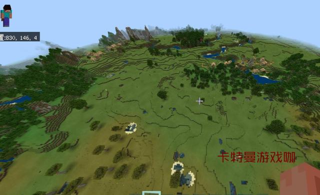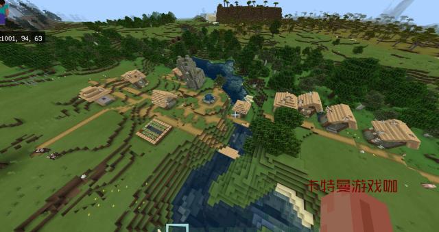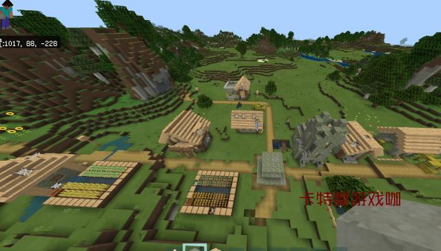 那我们就开始探索这个种子吧,我们输入种子号:-64142459。值得一提的是本次使用的是塑料卡通材质包。我们进入地图后,我们就发现出生点就有2个村庄靠在一起。