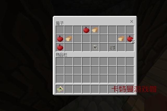 村庄里面的铁匠铺打开一看,除了苹果和面包还有一些装备。