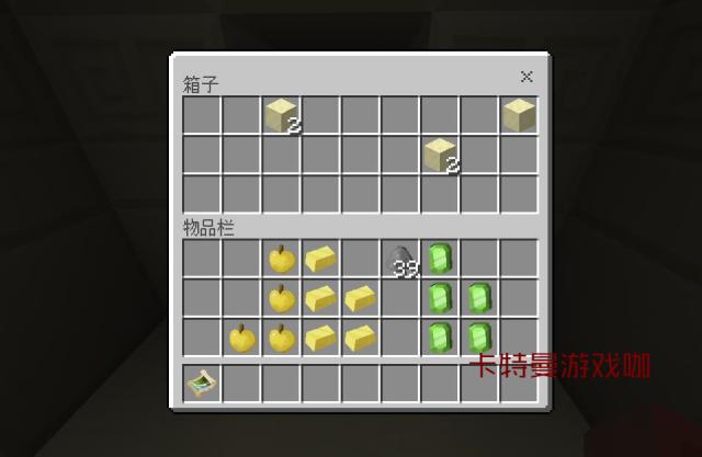 我们在附近的沙漠神殿里找到下面这些宝贝,有金苹果、金锭、一大堆的火药和绿宝石!真是收获颇丰,这个版本真的不缺金苹果。