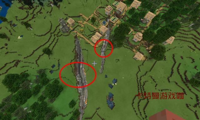 我们升空后,看到村庄附近的两条峡谷,这个角度不太好看,但是我们下去探索一下会发现惊天大秘密!