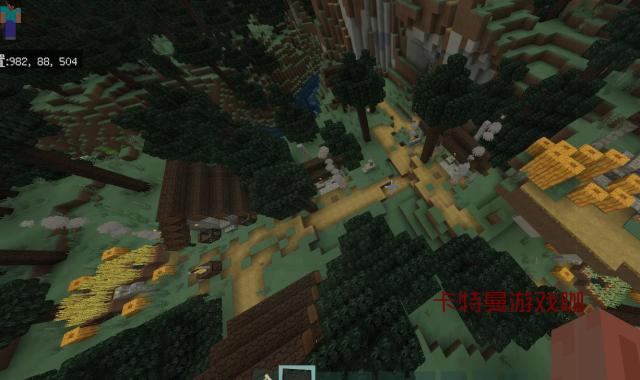 在图中的这个位置,我们来到一个针叶林村庄,不过这个村庄非常奇怪。首先第一眼望去,根本就没有发现村民的痕迹,你可能会说这个村庄是僵尸村庄。可是这里的村庄是完好无损的,没有任何的蜘蛛网和损坏的样子。并且也没有发现铁傀儡,不知道这是为什么。