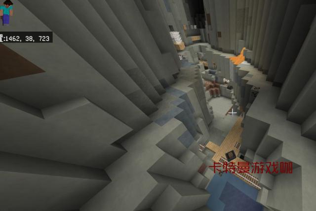 我们来到坐标:592.90.466的位置,我们就看到另外一个僵尸村庄,这个村庄中间被两条峡谷穿过,这个版本僵尸村庄太多了。