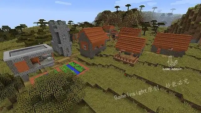 玩家将在沙漠、热带草原和平顶山这3大生物群落之间出生。向南朝沙漠方向走,(86 65 -211)处有铁匠村;(-350 75 -414)处有沙漠神殿;最后,在(-255 75 526)处又有另一个村庄。