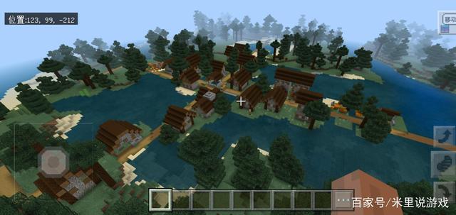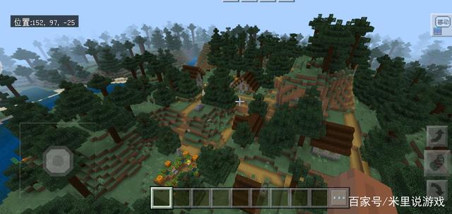 这个种子地图的代码是:919191,进入地图之后,出生地是在针叶林里面,然后我们往前方走过去,就可以看到左右两边分别有一个村庄,其实针叶林村庄在游戏中生成的概率是比普通村庄要低很多的,所以这里一下子出现两个,还是蛮惊喜的。