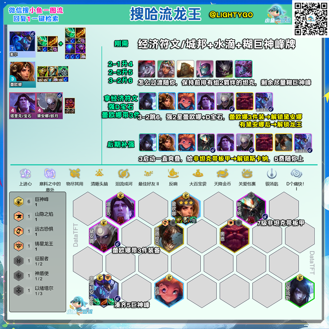 云顶之弈S16版本英雄联盟传奇主题,在新赛季会增加很多新的羁绊和棋子,还有不少老羁绊,老英雄的回归,那么有不少小伙伴好奇新赛季有什么强力阵容,下面就给大家带来s16搜哈流龙王阵容推荐。