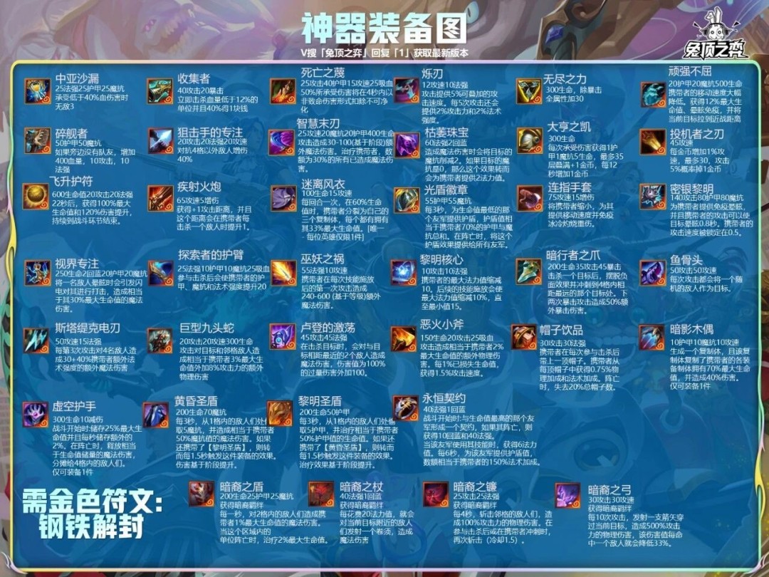 云顶之弈S16版本英雄联盟传奇主题,在新赛季会增加很多新的羁绊和棋子,还有不少老羁绊,老英雄的回归,那么有不少小伙伴好奇新赛季有哪些装备,那么下面就给大家带来s16神器装备一览图。