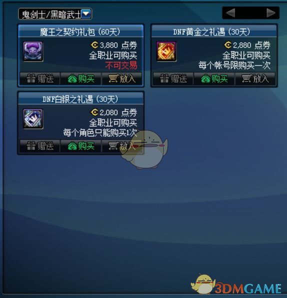 商城上架黄金/白银礼遇,仅能选择其一购买,仅限点券。