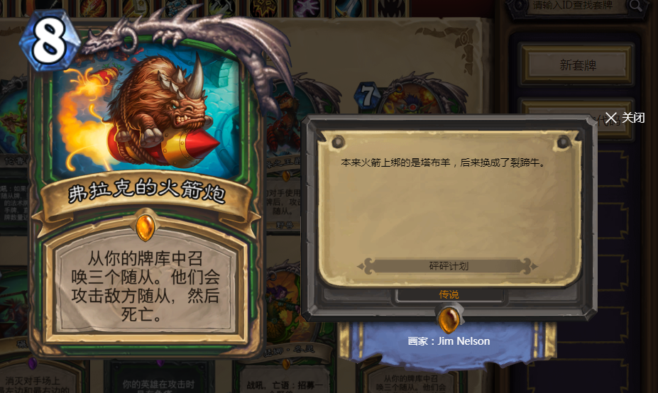 在砰砰计划中诞生出的有趣东西,虽然更多时候个人真的认为这只是个笑话。召唤三个随从攻击对方,从理论上出发,你可以召唤 3个剧毒随从,然后消灭对方的大哥。但是请注意一点,就是这张卡牌的效果是随机的。所以,你的运气是否真的有那么好呢?