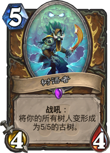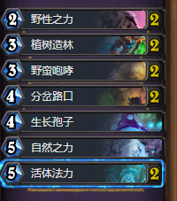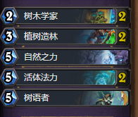 再看看树人体系法术,都是召唤2个以上树人,完全契合超生体系。如果前期裸下树人,还能配合树木学家和树语者,一个是发现buff,另一个是直接buff树人,总之收益颇高。