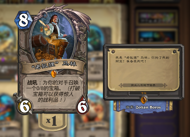 老狐狸6费6/6的身材,可以说是合格。但是关键在于他的额外效果,可以为对手召唤一个宝箱,如果打破他之后还有额外的奖励。给出的三个奖励都是非常不错的。所以打破之后也算是大大丰富了玩家们的手牌。因此,这也算是一张良心橙卡了,