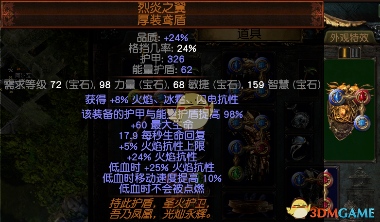 2.盾牌:因为没有了药剂提高上限,所以几乎是绑定盾牌来提高火抗了。何况盾牌属性也不差,有生命有秒回。实用,关键是便宜,也是C货。