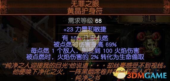 项链核心:无罪之眼,点燃受伤(触发受伤释放)