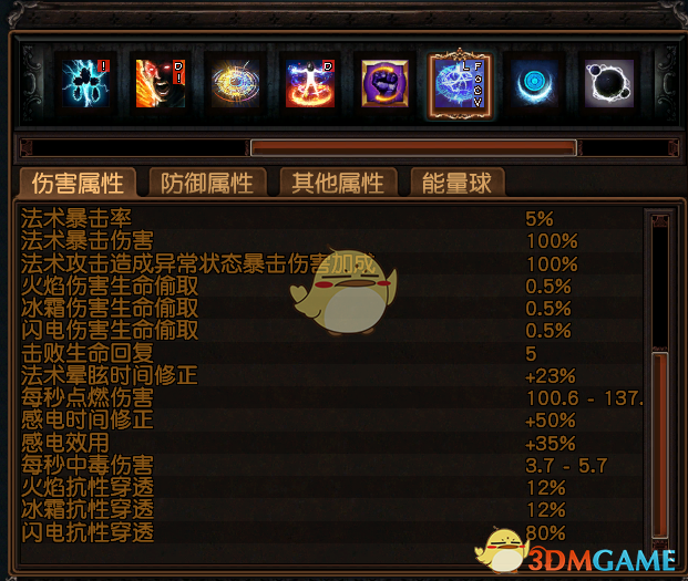 深渊宝珠的选择法术附加闪电伤害- 生命-护盾-魔力-击败敌人后伤害提高-击败敌人获得迷踪-没有击败敌人获得2%元素穿透。