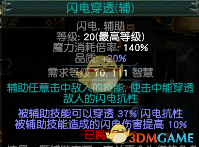深渊宝珠2%+项链5%+天赋 群星审判5%+天赋 雷霆之心6%+升华 混沌天才25%+技能宝石 闪电穿透 37%。