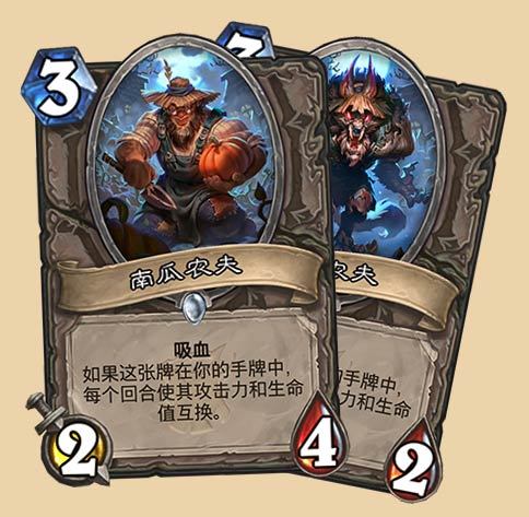狼人化。某些随从在手牌时,每个自己回合结束都会攻血互换,样子也会在人形和狼人之间转换。在天梯这种每回合都是很宝贵的场合,攻血互换根本没有实际用途,但是在竞技场还不错,可以伺机待发。