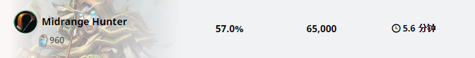 我们可以看到这套中速野兽猎的造价仅需960尘,相信这个造价对于绝大多数的玩家来说都能接受。在最近65000把对局中57%的胜率也是非常恐怖,5.6分钟的平均时间也是大多数快攻卡牌望尘莫及的,干就完事。