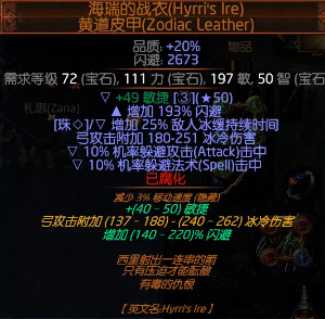 胸甲选择这个赛季buff过的西里的战衣,自带高冰霜点伤,高敏捷,非常契合堆敏捷的玩法,没有这件衣服前可以选用高血高抗黄装或者白袍,技能里连上附加冰霜伤害取下冰霜穿透