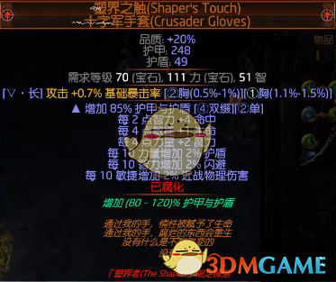 其他词缀: 暴击率、元素穿透、获得额外混沌伤等
