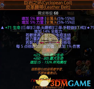 腰带选用巨岩之环,尽量选择高rol瓦出百分比敏捷,同时你的敏捷是必然高于智力的,所以免疫冻结,节约药剂上一个解冰冻的词缀.