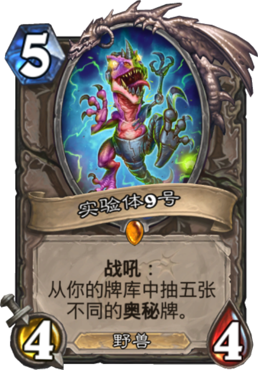 第7名是实验体9号,这张卡出来的时候很多人都不看好,主要是有了佛祖先入为主的观念,觉得这张卡和佛祖比起来真的是弱爆了啊。但从目前的效果来看,他在奥秘猎卡组中得到了最大的发挥,可以极大程度的补充手牌,压缩牌组,让奥秘猎中后期也会非常好打。
