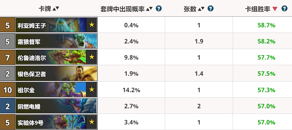 《炉石传说》拉斯塔哈战吼卡胜率排名