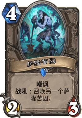 值得注意的是,打出时并不会计算为打出两张苦囚,因此萨隆苦囚是货真价实的冠军。盗贼卡组、节奏卡组、动物园、战吼萨,人人都爱萨隆苦囚,它攻守兼备,它也惨遭削弱。如果没有前几周的补丁,天知道萨隆苦囚还得熬多久!