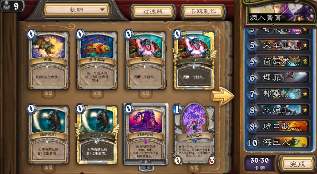 目前大家对于邦桑迪死亡之神的开发程度还比较低,根据环境可以调整,哪怕是不用777而是换成龙体系也可以让它成为过牌,但是却是杀招一般的存在,所以死亡之神开发之后目测会更适合牧师,在此我们留个悬念。