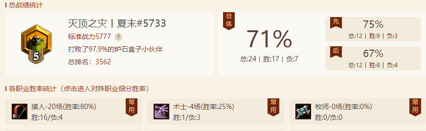 哈喽大家好,我是苏倾国。咱们的2019年炉石愿望是什么呢?当然是极速上低保/传说啦。今天带来一份蓝白猎上低保的攻略,是我们灭顶之灾的夏末以16-4的胜率由10级秒上低保,非常效率。下面是卡组和胜率: