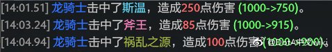 1. 分裂溅射:斯温巨力挥舞修改为100%分裂;龙骑士古龙形态改为100%溅射。(为了去除干扰,删除了古龙形态的腐蚀吐息的持续伤害)