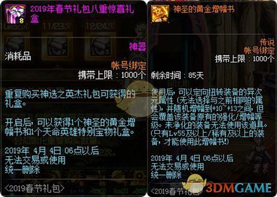 DNF2019春节套多买多送中赠送了增幅保护券,对于土豪玩家来说是一个非常好的消息,很多人想要购买春节套,囤一波增幅保护券,但又非常担心这次保护券不能交易。那么增幅保护券是否绑定呢?针对该问题,下面就为大家带来详细解答。