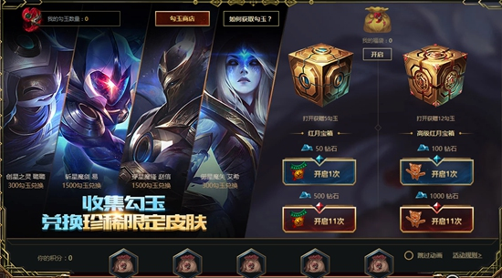 勾玉是1月11日腾讯发布的抽奖活动的活动币,打开一个红月宝箱,额外获赠5勾玉打开一个高级红月宝箱,额外获赠12勾玉、使用“勾玉熔铸”功能,将已获得的皮肤卡熔铸成勾玉。勾玉熔铸功能需要6个永久道具卡或7天体验道具卡,使用后这些道具卡将消失。每个永久道具卡熔铸获得3勾玉,每个7天体验道具卡熔铸获得1勾玉,熔铸将有小几率获得额外的勾玉。