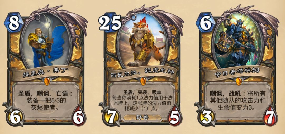 2、西瓦尔拉,猛虎之神:任何形态的奶骑都要带上的强力奶。后期的0费7-5圣盾突袭吸血,能够瞬间把处于危险血线的圣骑士拯救回来,而且要到明年4月才退环境。