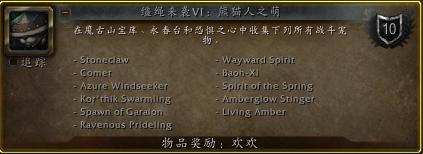 魔兽世界缰绳来袭第六季奖励宠物是欢欢,要得到欢欢的话需要完成魔兽世界缰绳来袭第六季熊猫人之萌成就。也就是要去刷90级的熊猫人之谜副本,收集副本BOSS掉落的小宠物,全部收集完成了就会奖励这个宠物。