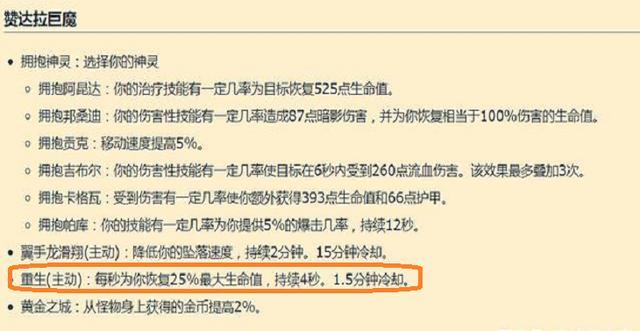 第四个:重生(主动),每秒恢复25%最大生命值,持续4秒。1.5分钟冷却。虽说赞达拉巨魔是祖宗辈分的,但这个未免也太强力了点!