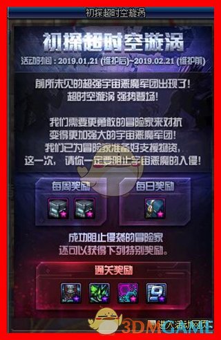 活动内容:每周登录游戏,通关超时空旋涡达到指定次数就能够领取奖励。