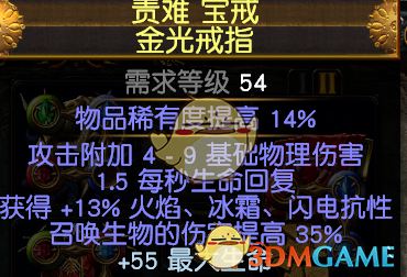 戒指:两个35%召唤伤的戒指,其中一个带孔,可以放纪律。