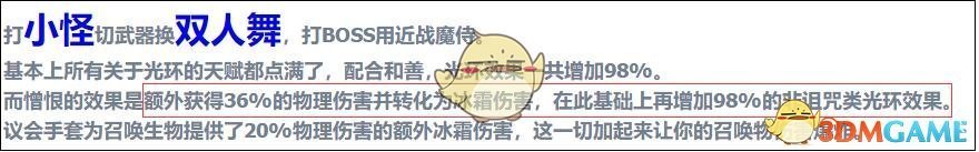 知道什么是额外吗? 就是让你的30级骷髅在423.06%攻速每次片刀轮3回的情况下,伤害翻了接近一倍(91.28%)。最后这句话不够准确,因为你有的是100%物理伤害,增加的是91.28%物理伤害的冰霜伤害,相当于在你有100个苹果的情况下又多了91.28%个梨。