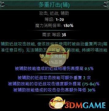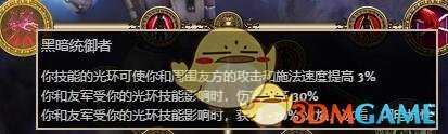 天赋点里提供了41%的召唤物攻击与施法速度,10颗珠宝提供了60%的攻击与施法速度,女巫独有的升华黑暗统御者每有一个光环可使你与周围的友方攻击和施法速度提高3%,我们有迅捷,瓦尔迅捷,憎恨,纪律4个光环,又增加了12%的攻速。刚刚的265.06+天赋41%+珠宝60%+黑暗统御者12%=378.06%!!!你以为这就完了么?我们还有3颗狂怒球,每颗狂怒球对召唤生物提供15%的攻击与施法速度。378.06+45=423.06,在拥有423.06%攻速的情况下,多重打击又让你小弟的片儿刀多轮两次。怎么样我就说我这篇文章不是扯淡吧,还是有料的!此时此刻你再想想咱们手套上放的是什么技能石:憎恨!