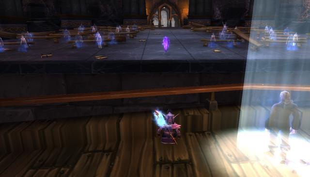 在点击完第一块水晶之后会获得一个8分钟的"麦迪文的回响"的BUFF,需要在8分钟内找到下一块水晶并点击,第二块水晶就在圣女边上的房间内,也就是图片标记的红色圆圈处,这里有一些小怪会控制人,很烦人呀。
